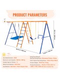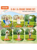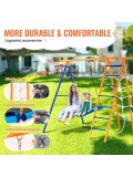 VEVOR Swing Sets for Backyard, 6 in 1 Swing Set with 2 Swings, Trapeze Bar, Climbing Ladder, Climbing Net, and Basketball Hoop, 440lbs Load Capacity Heavy-Duty Metal Swingset Outdoor for Kids Ages 3+
