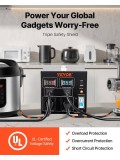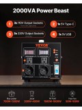 Μετασχηματιστής τάσης 2000 W. Αυτός ο μετασχηματιστής ανύψωσης/μείωσης διαθέτει 4 βύσματα AC, συμπεριλαμβανομένων 2 τριπολικών πριζών εξόδου US NEMA 5-15R, 2 ευρωπαϊκών πριζών εξόδου Shucko, 1 θύρας USB 5V και 1 υποδοχής τύπου C. Είναι εξοπλισμένος με 2 ενδείξεις LED που εμφανίζουν την τρέχουσα τάση εξόδου σε πραγματικό χρόνο, ώστε να αποφεύγεται η υπερφόρτωση του μετασχηματιστή.