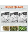 Η χειροκίνητη μηχανή συγκομιδής διαθέτει 3 διαφορετικές λεπίδες από ανοξείδωτο ατσάλι, ώστε να είναι κατάλληλη για το κόψιμο διαφόρων ειδών φυτών. Η ευθεία λεπίδα προορίζεται για το κλάδεμα υγρών φυτών, η οδοντωτή λεπίδα για το κλάδεμα ξηρών φυτών, ενώ η συρμάτινη λεπίδα «X» χρησιμοποιείται για ημι-ξηρά φυτά. Οι λεπίδες από ανοξείδωτο ατσάλι καθαρίζονται εύκολα, αλλά παρακαλούμε να είστε προσεκτικοί.