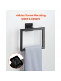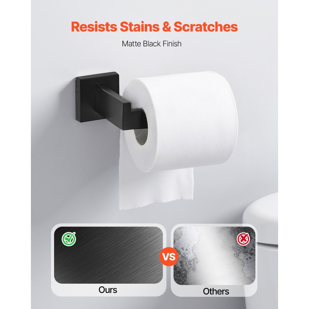 VEVOR Σετ Αξεσουάρ Υλικού Μπάνιου από Ανοξείδωτο Χάλυβα (5 τεμαχίων) συμπεριλαμβάνει Πετσετοθήκη & Κρίκο Πετσέτας (τετράγωνο) & 2 Γάντζους & Θήκη Χαρτιού Υγείας, για Μπάνιο, Επιτοίχια Τοποθέτηση Μαύρο