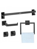 • Κομψός Σχεδιασμός: Με τη μινιμαλιστική, τετράγωνη μορφή του και την υψηλής ποιότητας ματ μαύρη επιφάνεια, αυτά τα αξεσουάρ μπάνιου είναι ανθεκτικά σε λεκέδες και γρατσουνιές, εξασφαλίζοντας διαρκή ομορφιά. Οι λοξοτομημένες άκρες προστατεύουν από τυχαίες γρατσουνιές, ενώ το διαχρονικό τους στυλ συμπληρώνει κομψά μια ποικιλία διακοσμήσεων μπάνιου