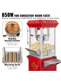 Αυτή η επαγγελματική μηχανή ποπ κορν με τροχήλατο καρότσι έχει ισχύ 850 W και χωρητικότητα 8 oz. Μπορεί να παράγει 48 φλιτζάνια ποπ κορν (περίπου 384 oz) ανά φόρτωση, ικανοποιώντας έτσι τις απαιτήσεις των πολυσύχναστων καταστημάτων ψιλικών. Ο λέβητας θερμαίνεται σε λίγα λεπτά και είναι έτοιμος να τροφοδοτήσει με άφθονο φαγητό τους λάτρεις του αθλητισμού, τους επισκέπτες φεστιβάλ και τους καλεσμένους σε πάρτι.