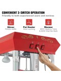 Τρεις εξαιρετικοί διακόπτες ελέγχουν ολόκληρη τη μηχανή ποπ κορν: θερμαντήρα, αναδευτήρα και θέρμανση καζάνι. Αυτό απλοποιεί τη χρήση και καθιστά τη λειτουργία εύκολη για κάθε προσωπικό. Το θερμαντικό δίσκο που βρίσκεται από κάτω είναι εξοπλισμένο με ένα θερμαντικό στοιχείο 50 W και ένα θερμό φως 60 W, που φωτίζει έντονα το ποπ κορν σας.
