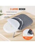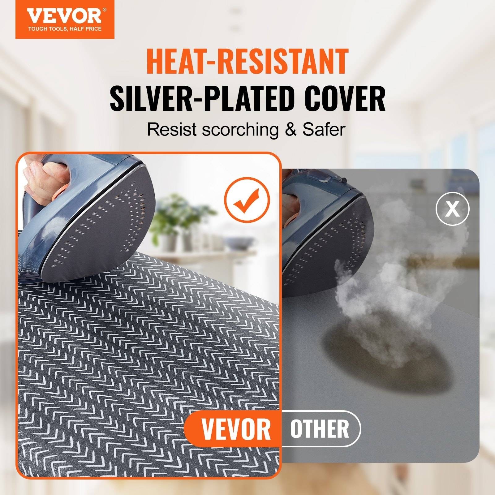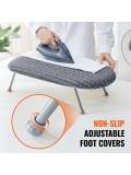 Η επιτραπέζια σιδερώστρα της VEVOR διαθέτει γάντζο για εύκολη ανάρτηση σε κρεμάστρα. Τα πτυσσόμενα πόδια της επιτρέπουν την εύκολη αποθήκευση σε ντουλάπια ή συρτάρια. Η σιδερώστρα διαστάσεων 23,4 x 14,4 x 7,4 ίντσες (595 x 365 x 187 mm) είναι ιδανική για μικρούς χώρους, διαμερίσματα, κοιτώνες ή για να την παίρνετε μαζί σας στα ταξίδια.