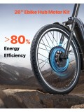 VEVOR 26 ιντσών E-Bike κιτ κινητήρα πλήμνης είναι εξοπλισμένο με έναν ισχυρό κινητήρα συνεχούς ρεύματος 1000W, που παρέχει υψηλή ταχύτητα 420rpm, ονομαστική ροπή ≥50 N.m και γωνία ανάβασης 0° - 12°. Είτε ανεβαίνετε λόφους είτε περιηγείστε σε πολύπλοκα εδάφη, αυτός ο κινητήρας το χειρίζεται με ευκολία, εξασφαλίζοντας μια ομαλή εμπειρία οδήγησης. (Σας ενημερώνουμε ότι το κιτ μοτέρ ποδηλάτου ΔΕΝ περιλαμβάνει μπαταρία, θα πρέπει να αγοράσετε ξεχωριστά μια συμβατή μπαταρία για την τροφοδοσία του μοτέρ).