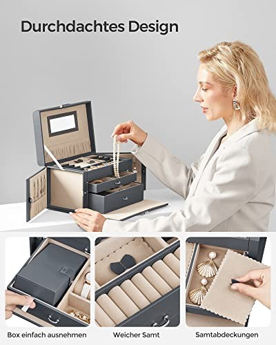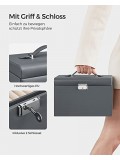 SONGMICS Jewellery Box 3 Layers, Jewellery Organiser with 2 Drawers, Jewellery Case with Portable Travel Case, with Handle, Lockable, Jewellery Storage, Gift for Loved ones, Grey JBC121G01