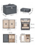 [Welcome Various Jewellery] Separate compartments, velvet pockets, openings for stud earrings, ring slots, watch cushions, side hooks for hanging necklaces without tangles—this 3-tier jewellery box offers storage for your various jewellery,[Separate Mini Travel Case] This jewellery organiser comes with a mini travel jewellery box, which is perfect for bringing a couple of pieces on your trip or vacation. Better still, the mini case has a mirror for you to primp yourself on the go,[Practical Lock and Handle] This jewellery case locks with 2 keys to keep your valuables safe and out of reach; the handle on the lid allows you to carry the jewellery box to anywhere you like easily,[Quality and Durable] Smooth PU surfaces, sturdy MDF body, soft velvet lining, neat stitching—this lockable jewellery box is sturdy and durable to accompany you for years to come,[Fancy Gift Idea] Gift this well-crafted, stylish jewellery organiser to loved ones for their birthday or anniversary to surprise them! Or, treat yourself to this charming jewellery box—you deserve it!,Specifications:- Colour: Grey- Material: PU (Polyurethane), MDF (Medium Density Fibreboard), Velvet- Product Size: 26 x 17 x 18 cm (L x W x H)- Size of Mini Travel Case: 14 x 9 x 3.5 cm (L x W x H)- Product Weight: 1.8 kg Package Contents:- 1 x Jewellery Box- 2 x Key