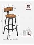 Βλέπετε το: VASAGLE Bar Stools, Kitchen Stools, Set of 2 Tall Bar Chairs with Backrest, Steel Frame, 73 cm High Seat, Easy Assembly, Industrial, Rustic Brown and Black LBC026B01V1