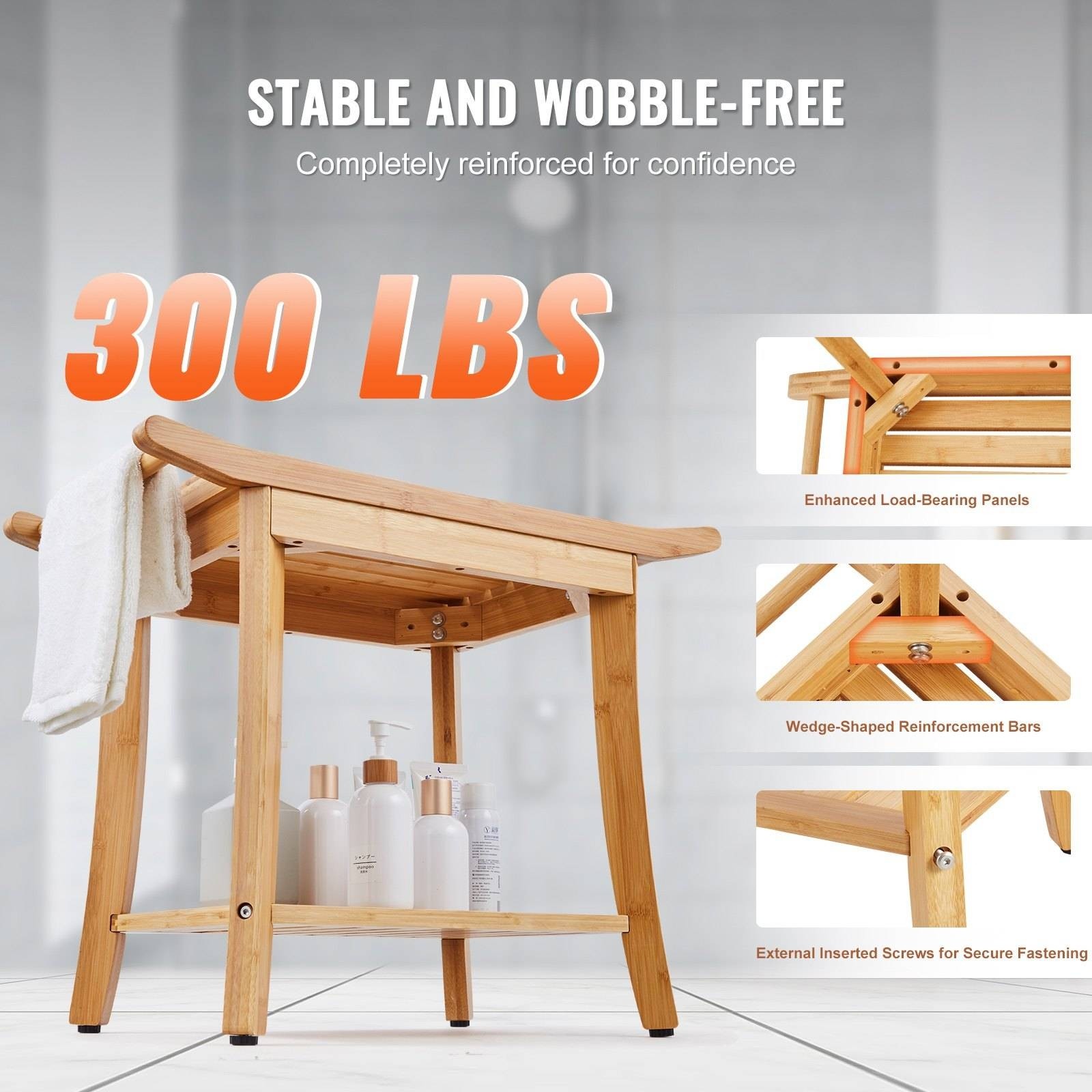 VEVOR  Πάγκος Ντους Μπαμπού 24x13.8x18.9 ιν. Καρέκλα Μπάνιου ZYSCWDCWDZZHGX0ZOV0