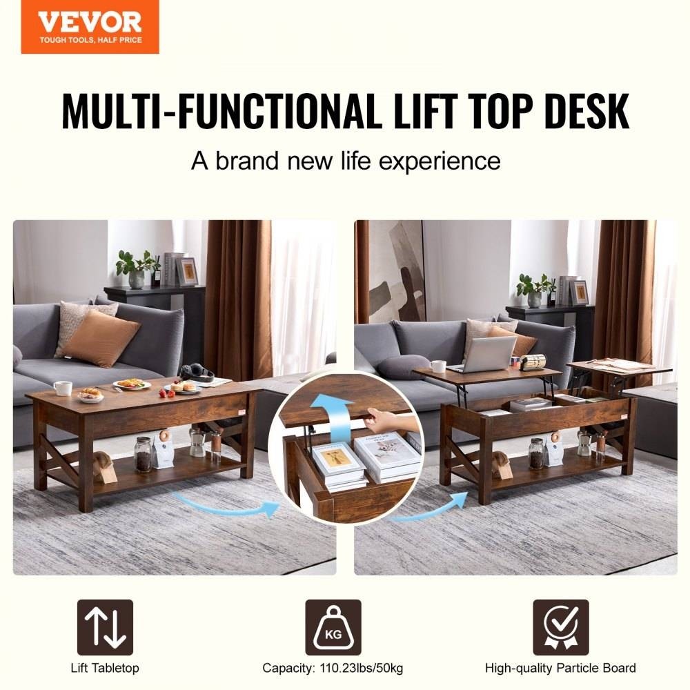 Αυτό το ρυθμιζόμενο σε ύψος (120,65cm) τραπέζι σαλονιού διαθέτει επεκτεινόμενη κορυφή που μπορεί να ανασηκωθεί για να παρέχει μια αιωρούμενη, υπερυψωμένη επιφάνεια εργασίας με δύο λειτουργίες (κανονική και υπερυψωμένη θέση). Μπορεί να χρησιμοποιηθεί ευέλικτα και είναι κατάλληλο για εργασία, φαγητό και αποθήκευση.