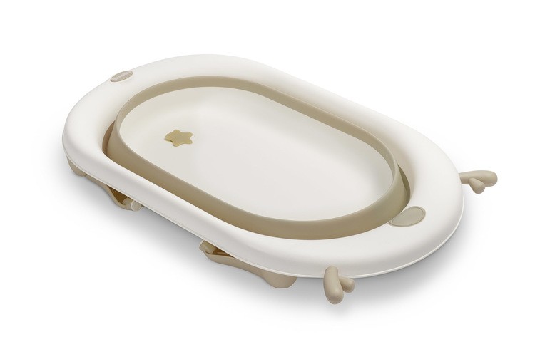 Η μπανιέρα έχει κλασικό σχήμα και είναι διακοσμημένη με χαριτωμένα κέρατα ελαφιών. Μπορεί να χρησιμοποιηθεί από τις πρώτες μέρες της ζωής του παιδιού μέχρι να είναι έτοιμο για μπάνιο σε μια παραδοσιακή μπανιέρα. Η μπανιέρα είναι κατασκευασμένη από ανθεκτικό και φιλικό προς το δέρμα υλικό. Επιπλέον, τα πόδια της μπανιέρας είναι εξοπλισμένα με αντιολισθητικά μαξιλάρια που την εμποδίζουν να κινηθεί και ένα μπλοκάρισμα κατά της απότομης αναδίπλωσης. Ο φελλός στην μπανιέρα αλλάζει χρώμα όταν η θερμοκρασία του νερού υπερβαίνει τους 38 βαθμούς και του επιτρέπει να στραγγίζεται εύκολα χωρίς να το σηκώνει.