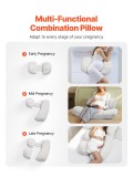 Αυτά τα ευέλικτα μαξιλάρια εγκυμοσύνης περιλαμβάνουν ένα μαξιλάρι σχήματος J και δύο μαξιλάρια σφήνας που μπορούν να συνδεθούν και να ρυθμιστούν με ιμάντες Velcro για εξατομικευμένη άνεση. Μετατρέπονται εύκολα από σχήμα H σε σχήμα L σε σχήμα U, παρέχοντας εξατομικευμένη υποστήριξη κατά τη διάρκεια της πρώιμης, μέσης και όψιμης εγκυμοσύνης για απόλυτη άνεση.