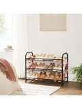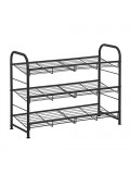 SONGMICS 3-Tier Shoe Rack, Stackable Shoe Storage Organiser, Hold up to 12 Pairs, Steel, 68.5 x 27.5 x 49.5 cm, for High Heels, Trainers, Slippers, in the Entryway, Black LMR066B01