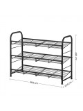 Set It Up Your Way: Prefer your shoes to sit flat? No problem. What about at an angle? Sure thing. You can even stack several racks up for extra space—we have included the connectors,House All Your Footwear: No more messy shoe piles. Line them up neatly on this shoe rack—short boots on top, sneakers on the other 2 shelves, and slippers under the bottom shelf, how about high heels? Well, the side bars are designed for hanging them,Support Steadily, Support Reliably: With a robust steel frame and adjustable feet, this shoe rack offers strong and stable support (5 kg load each shelf). Also, the additional bar in the front adds security. Shoes fall down? Fat chance!,Assembly Is a Breeze: Set up your shoe rack in minutes! Follow the clear instructions, align the connecting parts easily due to numbered marks, tighten the screws, then install the anti-tip kit if necessary. Simple enough, right?,What You Get: A shoe rack with 3 shelves, a sturdy steel structure, and a solid way to support not only your shoes in the entrance, but also everything you need in the bedroom, walk-in closet, or garage,Specifications:- Colour: Black- Material: Steel- Product Size: 68.5 x 27.5 x 49.5 cm (L x W x H)- Product Weight: 2.8 kg- Max. Static Load per Shelf: 5 kg Package Contents:- 1 x Shoe Rack- 1 x Accessory Bag- 1 x Instructions (EN, DE, FR, ES, IT)