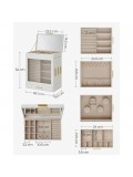 3 πλαϊνά συρτάρια για να αποθηκεύσετε κολιέ και σκουλαρίκια - χωρίς μπερδέματα - και να αποθηκεύετε δαχτυλίδια, βραχιόλια και ρολόγια. Το επάνω επίπεδο και το κάτω οριζόντιο συρτάρι είναι ιδανικά για καρφίτσες, αξεσουάρ μαλλιών κ.λπ..