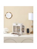 Κομψός συνδυασμός λευκού και χρυσού χρώματος, ελαφρώς αστραφτερές μεταλλικές λαβές, απαλή βελούδινη επένδυση, προσεγμένες ραφές, PU υψηλής ποιότητας, στιβαρό MDF - αυτά τα στοιχεία μαζί δημιουργούν ένα κομψό και ανθεκτικό κουτί κοσμημάτων.