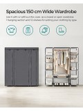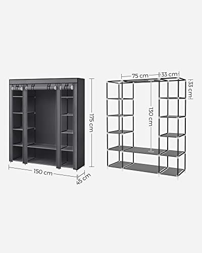 SONGMICS Portable Wardrobe, Foldable Closet, Clothes Storage Organiser with Hanging Rail, Shelves, Fabric Cover, for Bedroom, Cloakroom, 150 x 45 x 175 cm, Grey LSF03G