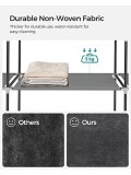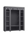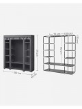 Large Capacity: This fabric wardrobe measures 45 x 150 x 175 cm, offering enough space for all your clothes. The hanging rail is 132 cm high for long clothes such as coats and winter jackets,Categorised Storage: This spacious wardrobe is divided into 12 sections. Hang T-shirts and coats on the rail, store folded trousers and hats in the upper compartments, and place shoes on the bottom shelf—all your items could find their places,Great Strength: This portable wardrobe is made of 16 mm thick metal pipes, quality plastic connectors, and 120 g/㎡ non-woven fabric. The hanging rail can support 15 kg, and each shelf can hold up to 5 kg,Easy Assembly: No tools required. Just follow the instructions and insert the tubes into the plastic connectors, then you can finish the assembly of this clothes storage organiser effortlessly. Also, spare parts are provided for replacement,Zip It Up or Keep It Open: Zip up the door and the fabric cover will keep your clothes away from dust. Or, roll up the door and keep it open in your bedroom to make it easier to get ready before heading out,Specifications:- Colour: Grey- Material: 120 g/m² Non-Woven Fabric, 16 mm Metal Tube, PP Plastic Connector- Product Size: 45 x 150 x 175 cm (D x W x H)- Product Weight: 5.3 kg- Max. Static Load Capacity per Shelf: 5 kg- Max. Static Load Capacity of the Hanging Rail: 15 kg Package Contents:- 1 x Fabric Wardrobe- 1 x Instructions