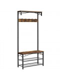 Welcomes You Home: Eliminate the mess in your hallway with this smart coat shoe rack; perfect balance of clean lines, modern elegance and effortlessly rustic appeal,Everything You Need: After coming back home at the end of the day, just hang your coat, hat and scarves on the top 5 dual hooks, sit on the bench to remove your shoes and put them on the 2 metal mesh storage shelves,Stable and Safe: With 4 adjustable feet, the coat rack can stand perfectly stable on carpets or uneven floors; 2 anti-toppling straps are included to ensure safe use,Solid Construction: Robust metal tubes with particleboard in vintage style, it provides a strong and sturdy bench for adult to sit on; holds up to 100 kg,Specifications:- Colour: Rustic Brown- Material: Particleboard, Metal- Product Size: 80 x 32 x 178.5 cm (L x W x H)- Board Size: 80 x 30 cm- Weight: 13.1 kg- Load Capacity of Each Hook: 3 kg- Load Capacity of Lower Board: 100 kgPackage Contents:- 1 x Hall Rack- 1 x Instructions (EN, DE, ES, FR, IT)