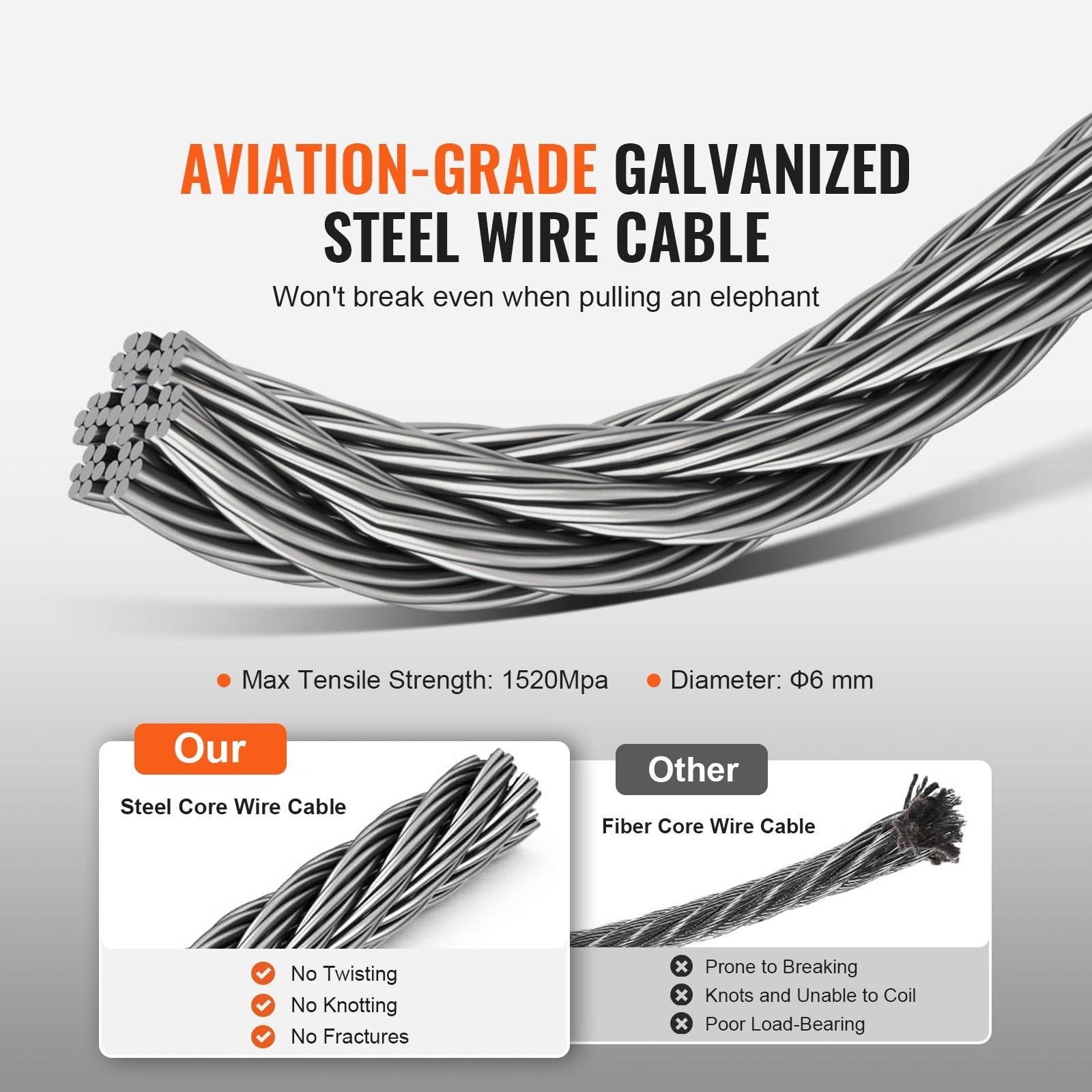Η αντοχή συναντά την κομψότητα με το γαλβανισμένο χαλύβδινο συρματόσχοινο αεροπορικής ποιότητας του βαρούλκου μας. Πείτε αντίο στις συστροφές και τα μπερδέματα και καλωσορίστε την ανθεκτικότητα που προσφέρει αντοχή σε εφελκυσμό έως 1520 MPa. Το θέμα είναι να ανυψώνετε με σιγουριά και ηρεμία.