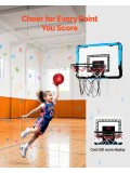 Το καλάθι μπάσκετ για παιδιά περιλαμβάνει 3 μπάλες μπάσκετ και προσφέρει δυναμικά εφέ φωτισμού και ήχους επευφημίας κάθε φορά που πετυχαίνει κάποιος καλάθι. Στη λειτουργία εξάσκησης, τα παιδιά ακούνε επευφημίες όταν πετυχαίνουν καλάθι μέσα σε 5 δευτερόλεπτα. Στη λειτουργία παιχνιδιού, τα παιδιά κερδίζουν δύο πόντους για κάθε καλάθι που πετυχαίνουν μέσα σε 1 λεπτό. Αυτό είναι ιδανικό για να ξεκινήσετε έναν φιλικό διαγωνισμό μπάσκετ!